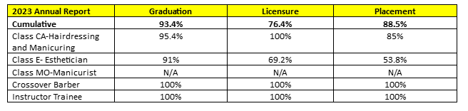 The qualitative element used to determine academic progress is a reasonable system of grades as determined by assigned academic learning. Students are assigned academic learning and a minimum number of practical experiences. Academic learning is evaluated after each unit of study. Practical assignments are evaluated as completed and counted toward course completion only when rated as satisfactory (85%) or better (the computer system will reflect completion of the practical assignment on a 100% scale). At least two practical skills evaluations will be conducted during the course of study. Practical skills are evaluated according to text procedures and set forth in practical skills evaluation criteria adopted by the Academy. Students must maintain a written grade average of 85% and pass written and practical exams prior to graduation.
